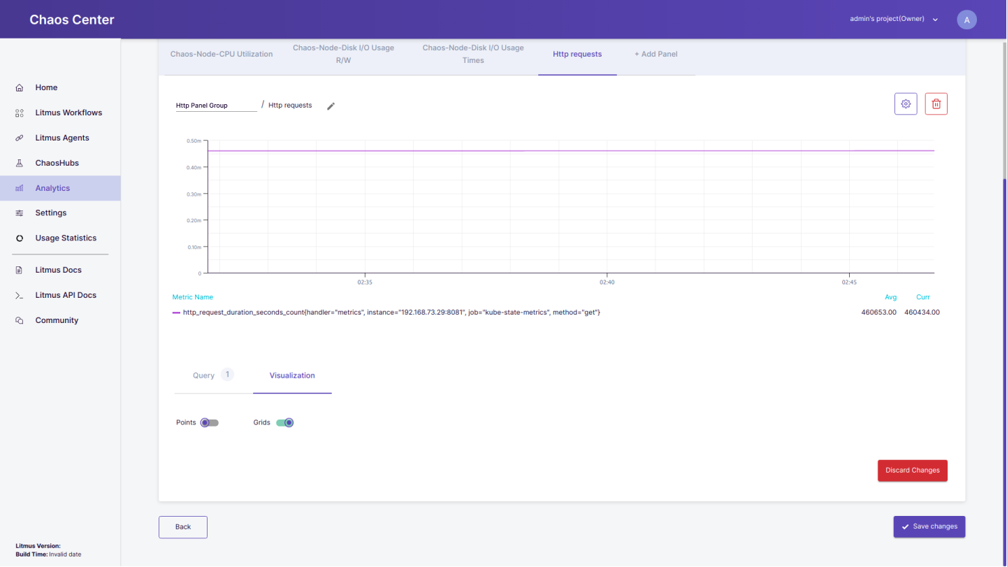 • Grids: By default, the grid option is turned on. It is meant to render a grid line in the background of the graph which aids the viewers of the graph to perceive and evaluate the unlabeled data points of the metrics.